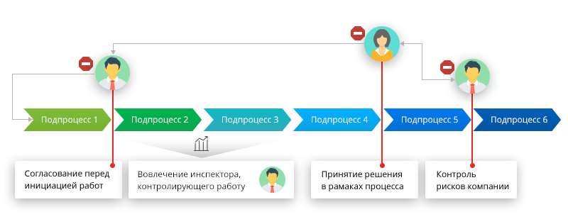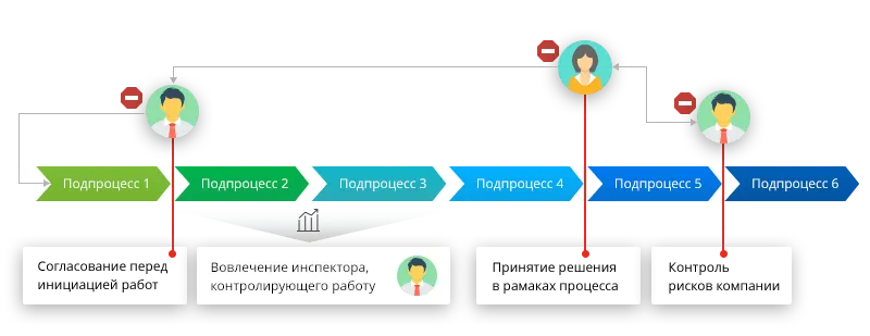 Контроль рисков компании, связанный с деятельностью сотрудника, который следит за результатом процесса. Он также может вернуть бизнес-процесс на начальные этапы или зациклить исполнение.