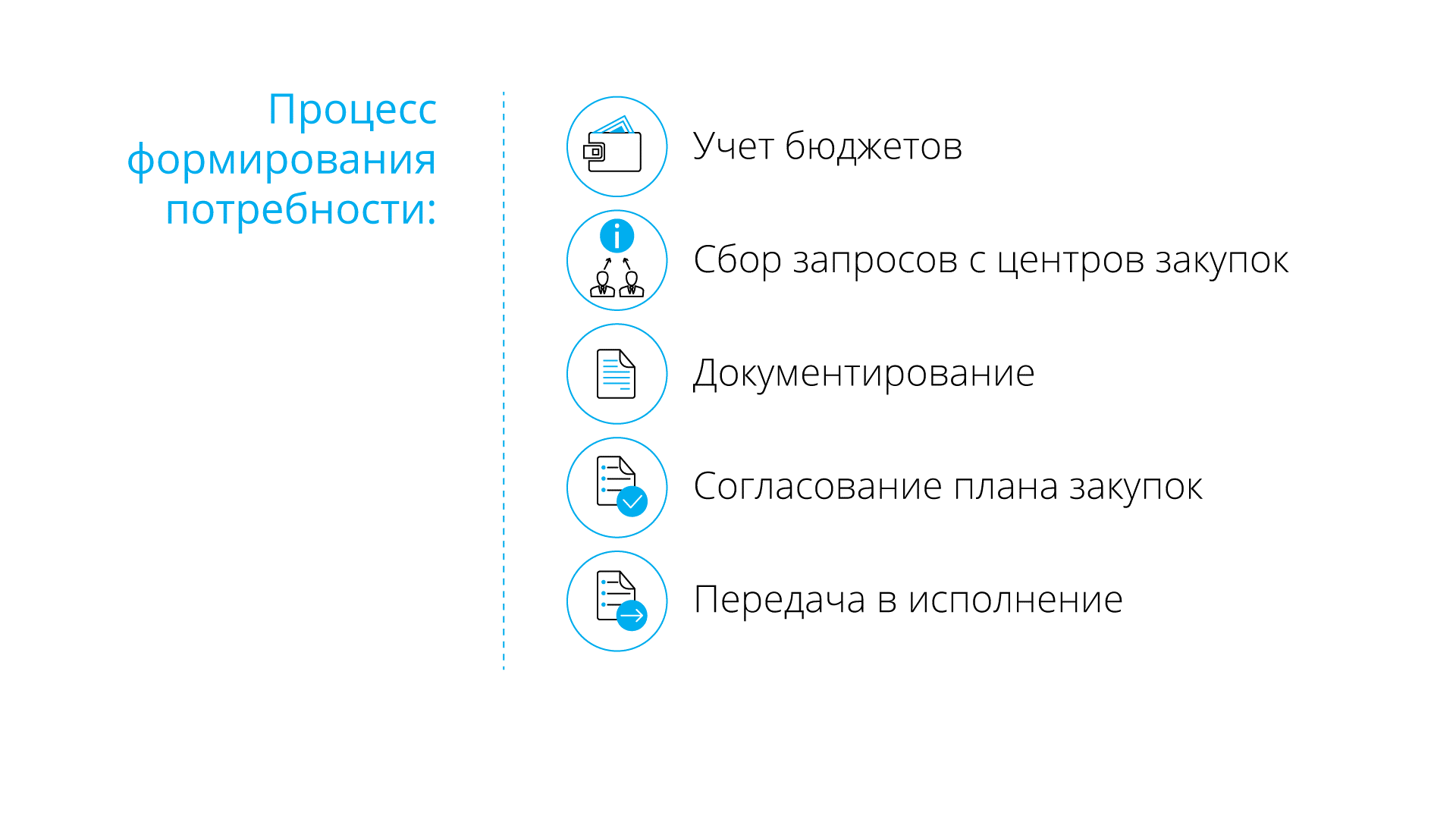 Планирование – потребность формируется в виде плана закупки. Процессы отвечают за сбор и агрегирование информации из различных источников – ЦФО, подразделений, дочерних обществ.