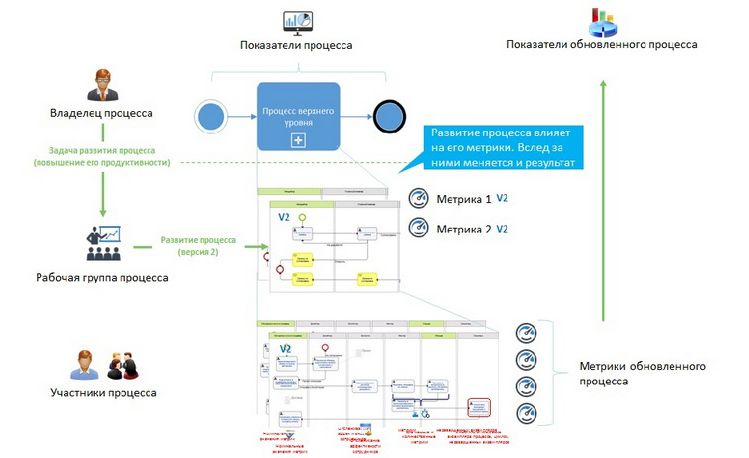 Гибкость и эффективность компании. С одной стороны, работа с процессами должна быть упорядочена (для этого существует множество систем: 1C, ERP, SAP, Oracle и т. п.). Если в команде работает несколько сотен человек, без формализации процессов не обойтись. С другой стороны — компании нужно сохранять гибкость, то есть быстро адаптировать процессы в случае изменения ситуации на рынке. Одновременное повышение гибкости и эффективности — работа в двух противоположных направлениях, («цементирование» процессов, например, с помощью ERP-системы существенно влияет на эффективность компании, но одновременно лишает ее гибкости), но она возможна за счет изменения процессов.