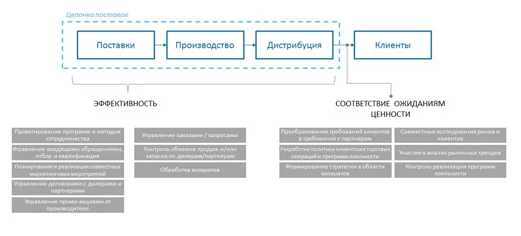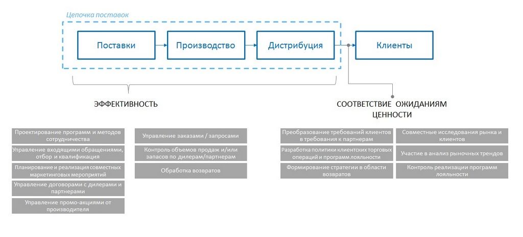 Управление спросом (совместные исследования рынка и клиентов, анализ рыночных трендов, контроль реализации программ лояльности).