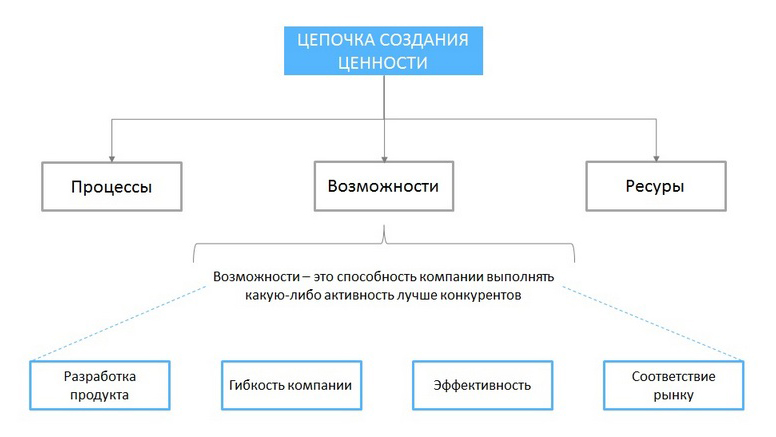 Как правило, в цепочках поставок и создании ценности выделяют следующие Возможности: