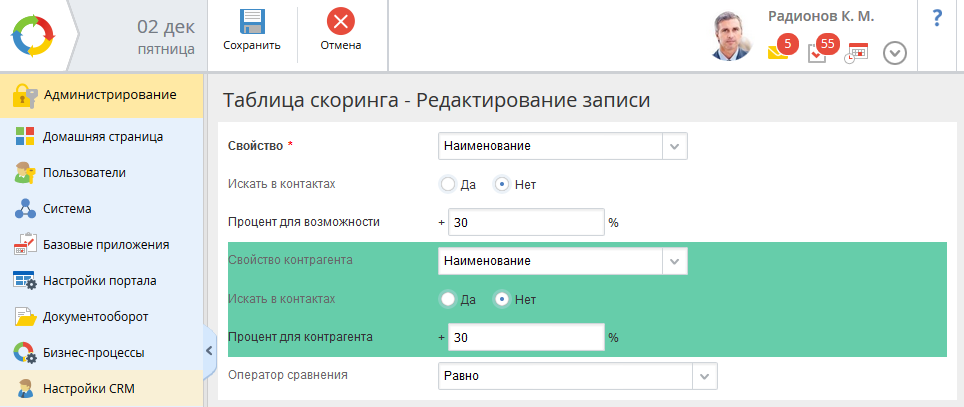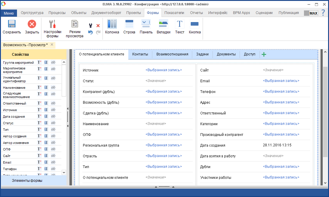 Напоследок хочется отметить, что мы реализовали несколько мелких доработок в функционале работы с клиентами. Изменения преимущественно небольшие. Например, мы расширили область применения Конструктора форм в CRM+ - теперь в удобном визуальном редакторе можно создавать и настраивать формы Возможностей.