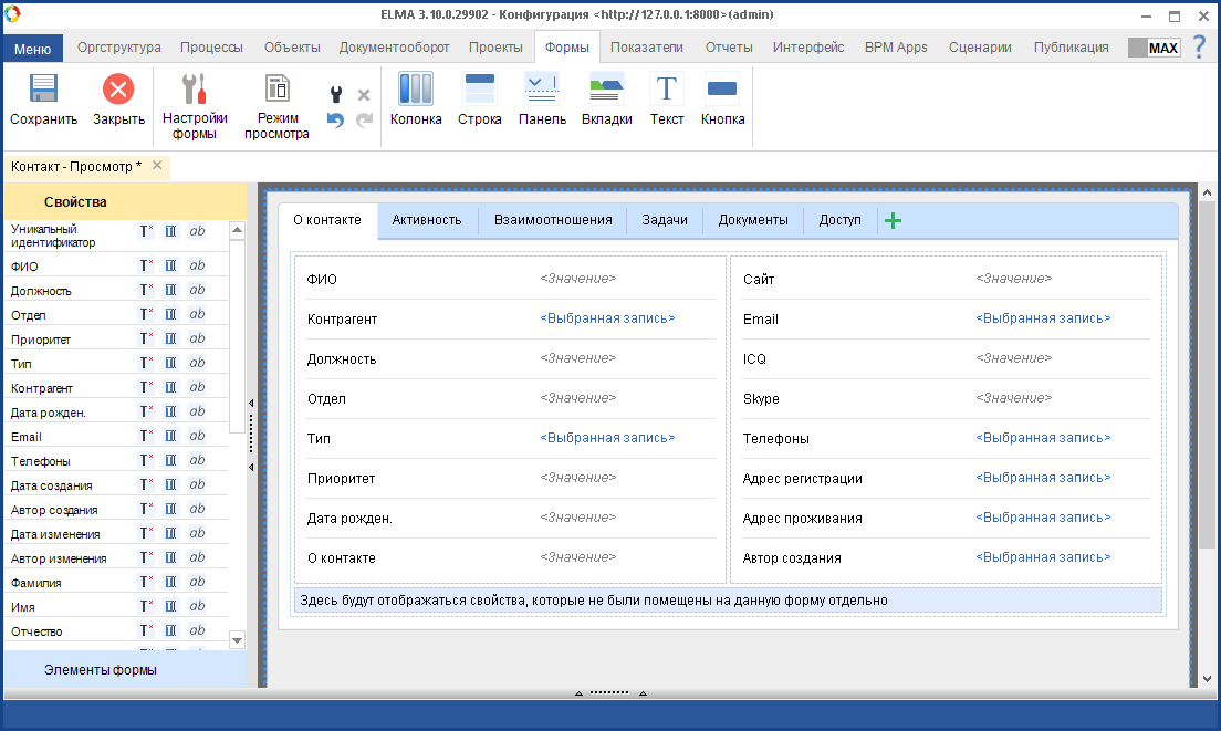 Также теперь доступна возможность переделки формы Контактов под конструктор форм.