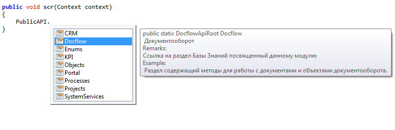Использование ELMA API при разработке сценариев в несколько раз уменьшает объемы кода для решения конкретных задач, а также делает код более понятным. В версии 3.10 мы добавили возможность использования функции автокомплита при работе с Отчетами.