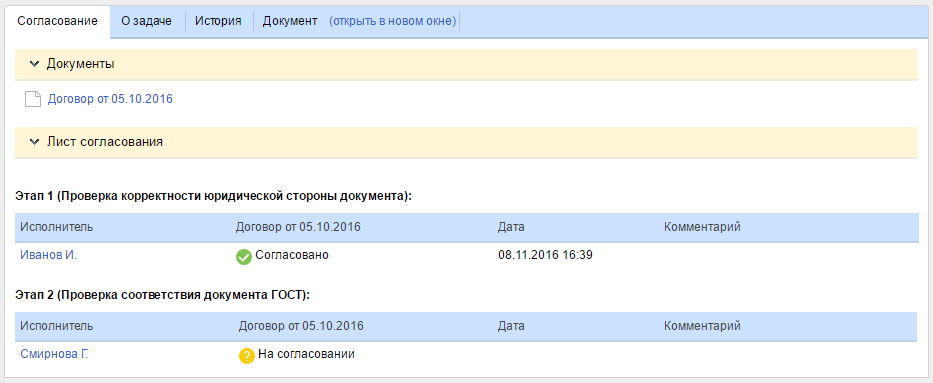 Иногда возникают ситуации, когда требуется согласовать «нестандартный» документ. Как правило, подобные документы необходимо согласовывать в несколько этапов, сотрудниками различных отделов. Для этого в системе ELMA была добавлена возможность согласования документов по этапам.