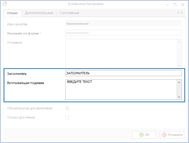 Так, например, в конструкторе форм для строковых полей появилась возможность указать текст внутри поля, а для любых атрибутов объекта добавить всплывающую подсказку. Пользователям больше не придется «гадать», что им нужно вводить в том или ином поле.