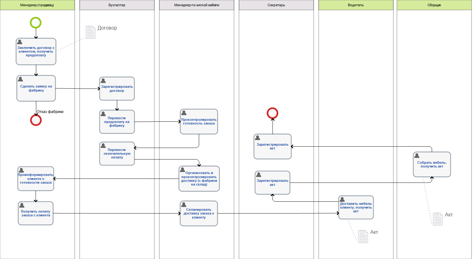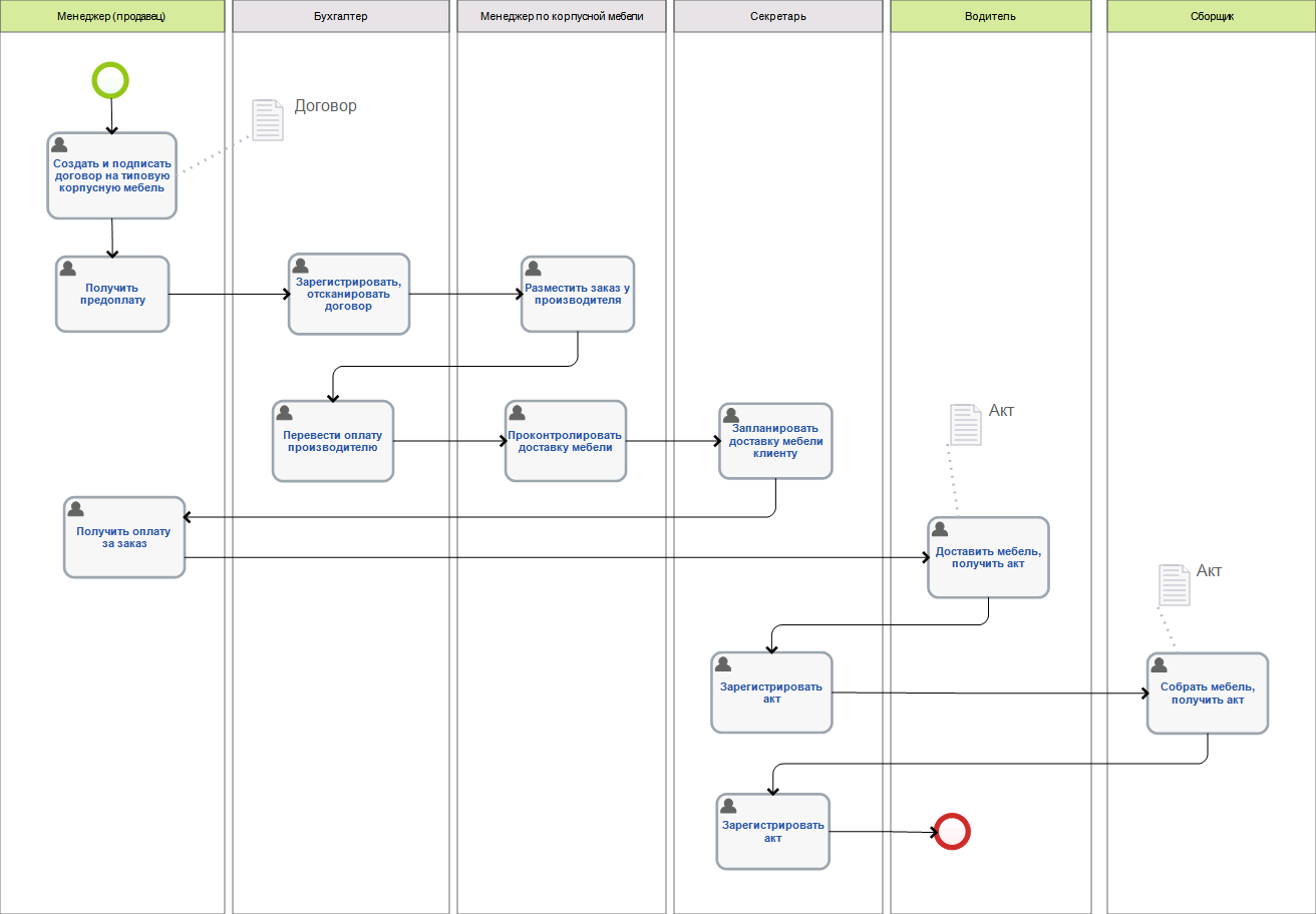 Опираясь на результаты, полученные при изучении бизнес-процессов As is «как есть», специалисты компании ELMA приступили к моделированию бизнес-процессов предприятия ООО «Ваша мебель» To be «как должно быть» с учётом стоящих перед бизнесом задач и имеющихся проблем.