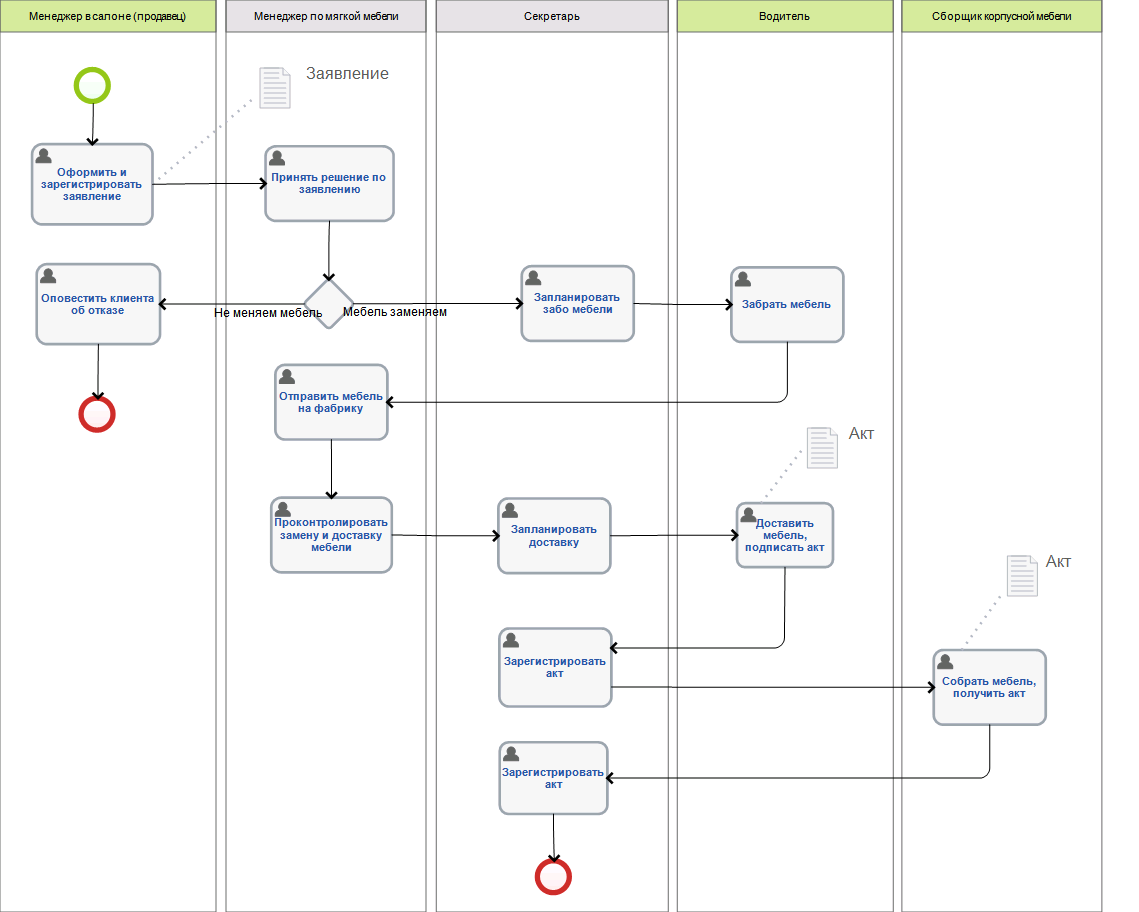 На данной стадии были внесены изменения в механизм работы с заявлениями и добавлено описание ещё одного процесса – «Продажа типовой корпусной мебели» (данный процесс уже внесён в описание картины To be – см.выше).