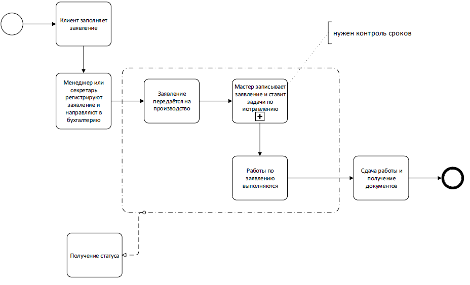 Рис.3. Подпроцесс «Заявление от клиента»