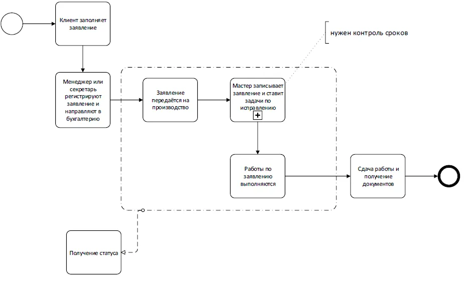 РИСКИ! На данном этапе контроль сроков выполнения полностью отсутствует - мастер может отложить заявление «на потом» и забыть в процессе изготовления других заказов