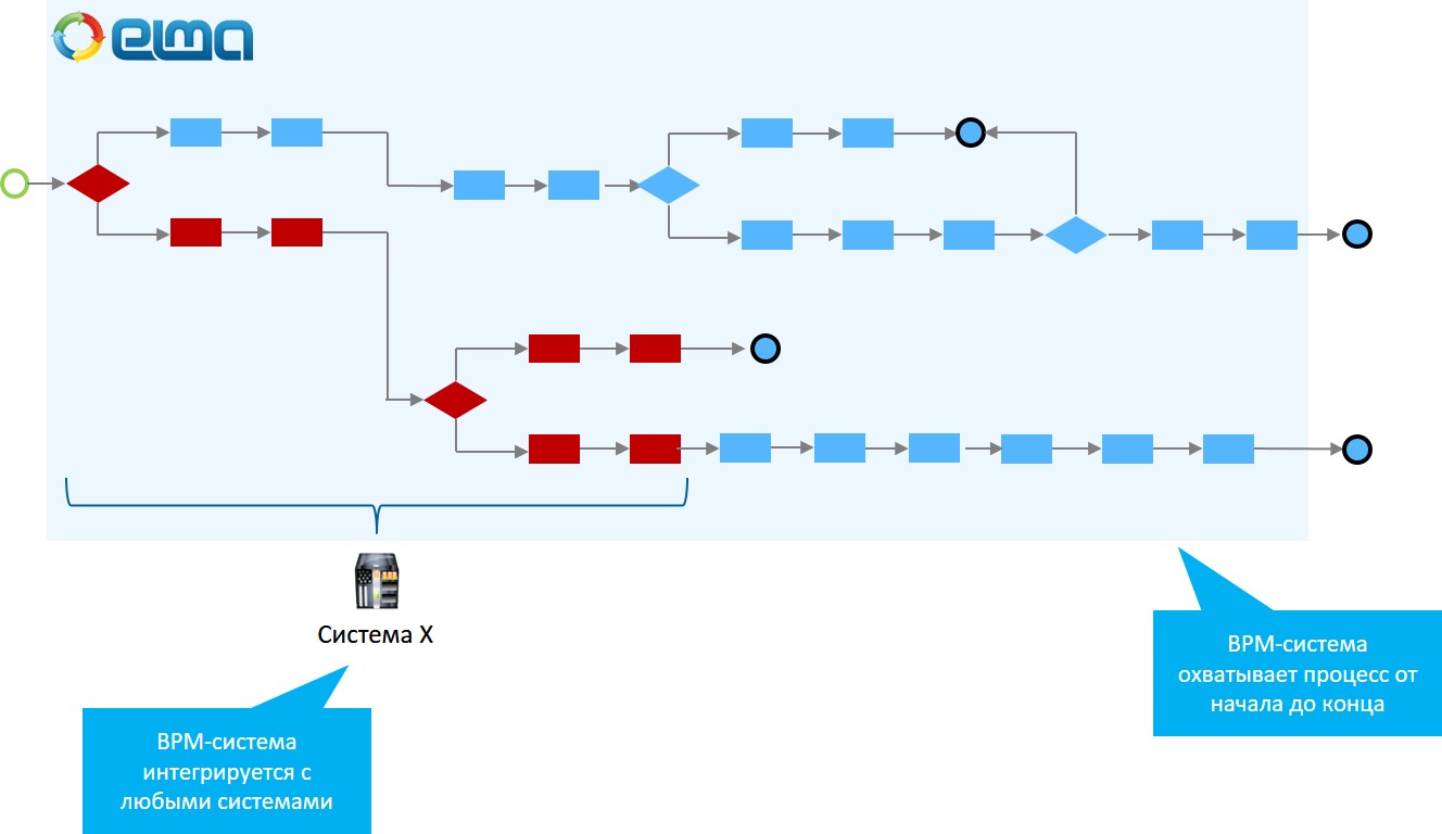 Это важно, так как иногда бывает целесообразно оставить часть процесса в ERP или другой системе, а остальные участки автоматизировать с помощью BPMS.