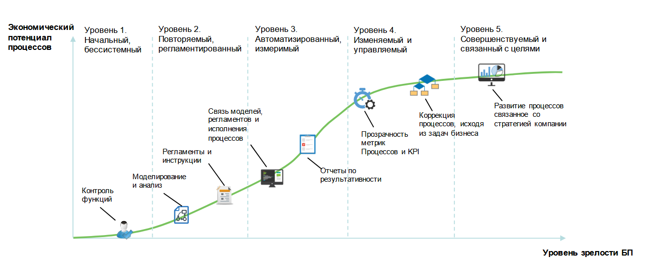 Кроме этого, важно понимать, что у каждого процесса существуют уровни зрелости: