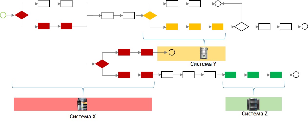 В случаях, когда часть процесса продолжает выполняться в ручном режиме, либо он автоматизирован с помощью нескольких не интегрированных между собой ИТ-систем, реализовать такую схему работы не представляется возможным.