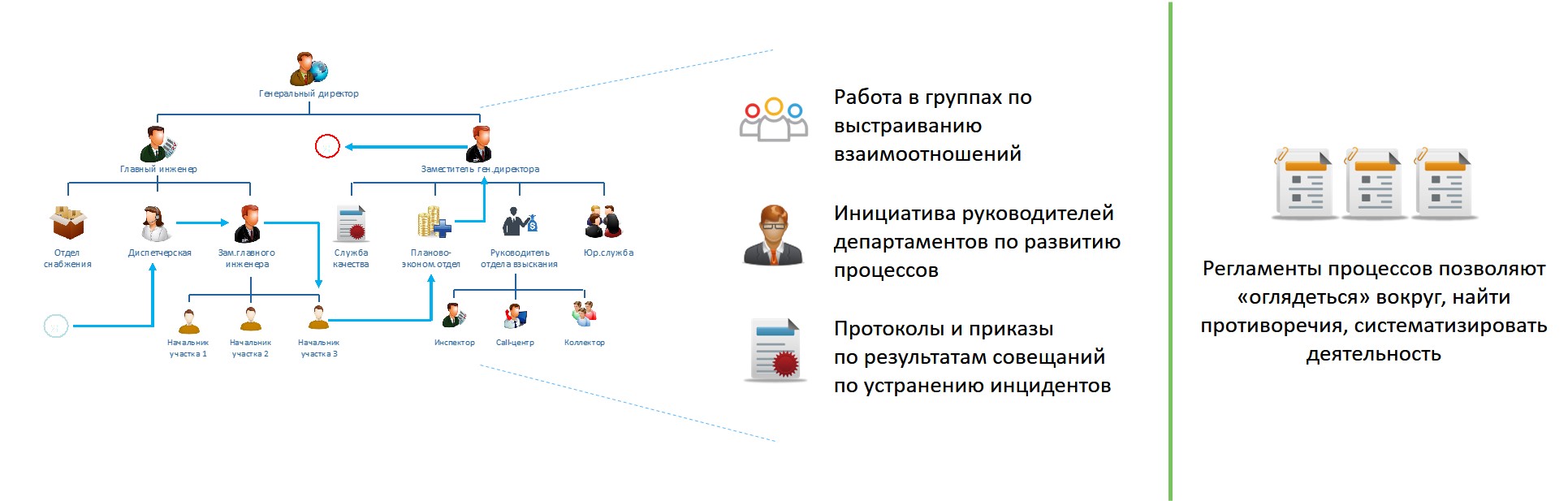 Регламенты позволяют навести порядок – «оглядеться» вокруг, найти противоречия и дублирующие функции в деятельности подразделений и понять, как можно связать бизнес-процессы.