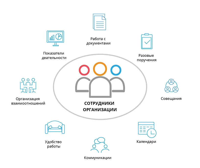 Процессы, связанные с организацией работы персонала поликлиники, позволили ускорить сроки по формированию и согласованию графиков отгулов и ежегодных отпусков персонала. Для более эффективной работы специалистов был внедрен корпоративный портал – инструмент взаимодействия сотрудников друг с другом, поскольку «сети распространения информации внутри организации позволяют последним создавать в тех или иных областях критические массы знаний, служащие основой для выработки работающих стандартов. Они также открывают для сотрудников доступ к созданным стандартам, позволяя им высказывать замечания, направленные на их совершенствование». Корпоративный портал также выступил в роли информационно-справочного центра, где сотрудники в кратчайшие сроки могут найти нужную и актуальную информацию, поставить задачи, обменяться сообщениями, внести события в календарь, предоставить отчетность, работать с документацией. Все сотрудники, включая руководителей, получают информацию в одном окне.