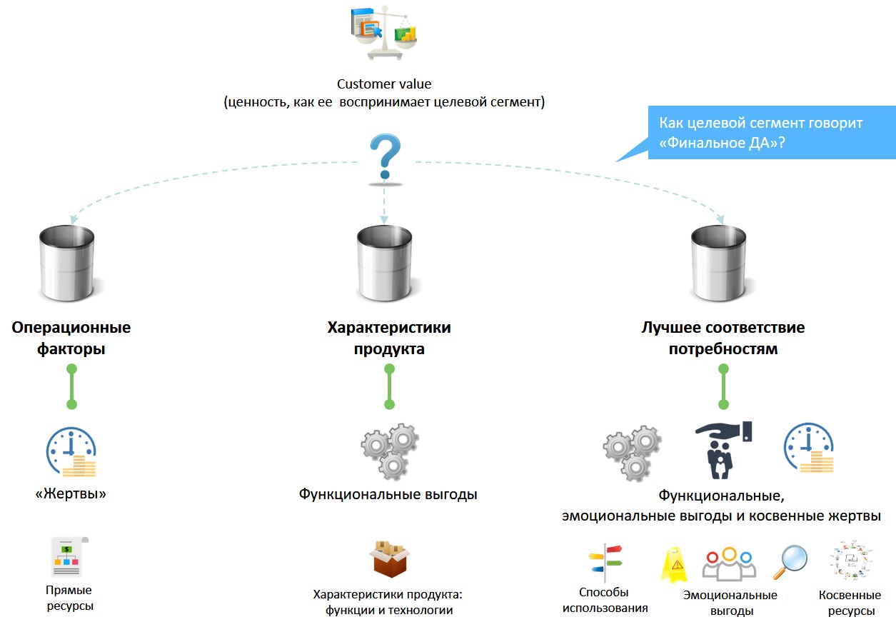 Изучить выгоды и «жертвы» целевых сегментов, которые формируют Customer value (ценность, как ее воспринимает клиент).