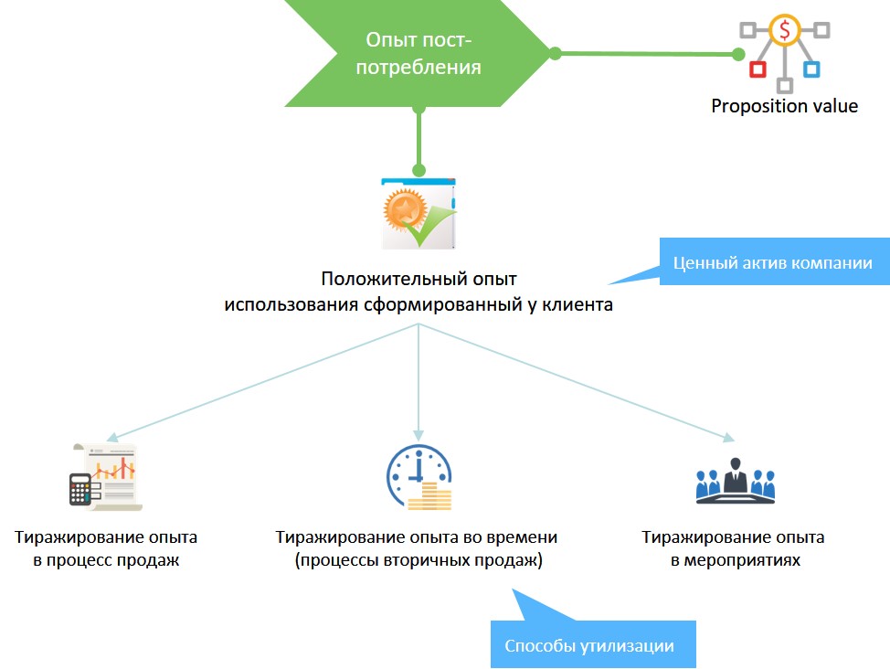 Задача компании – проанализировать опыт потребления продукта клиентом, а затем тиражировать его во времени (выстроить процессы вторичных продаж) и в маркетинговых кампаниях.