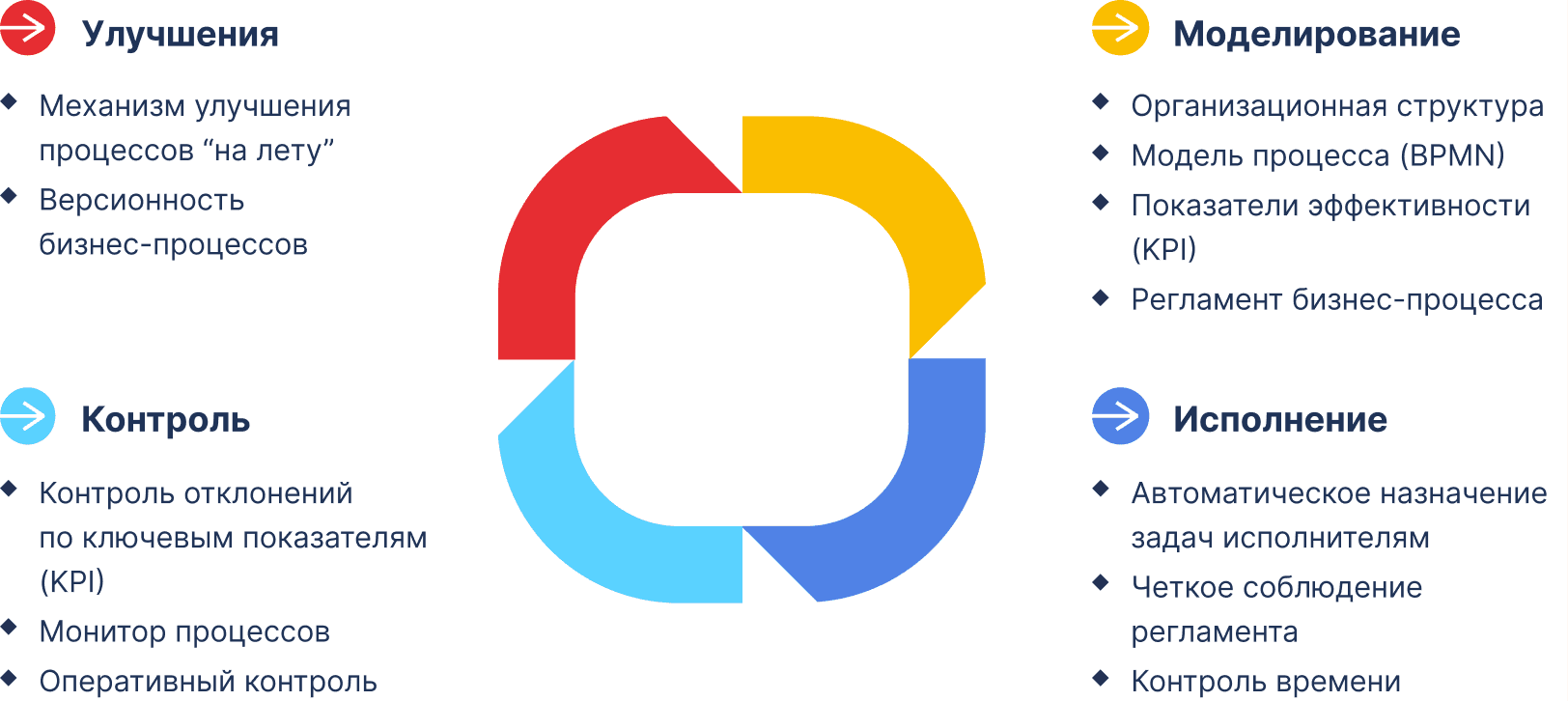 Системы BPMS позволяют бизнес-пользователям самим управлять и изменять бизнес-процессы, совершенствуя их и нацеливая на больший результат.