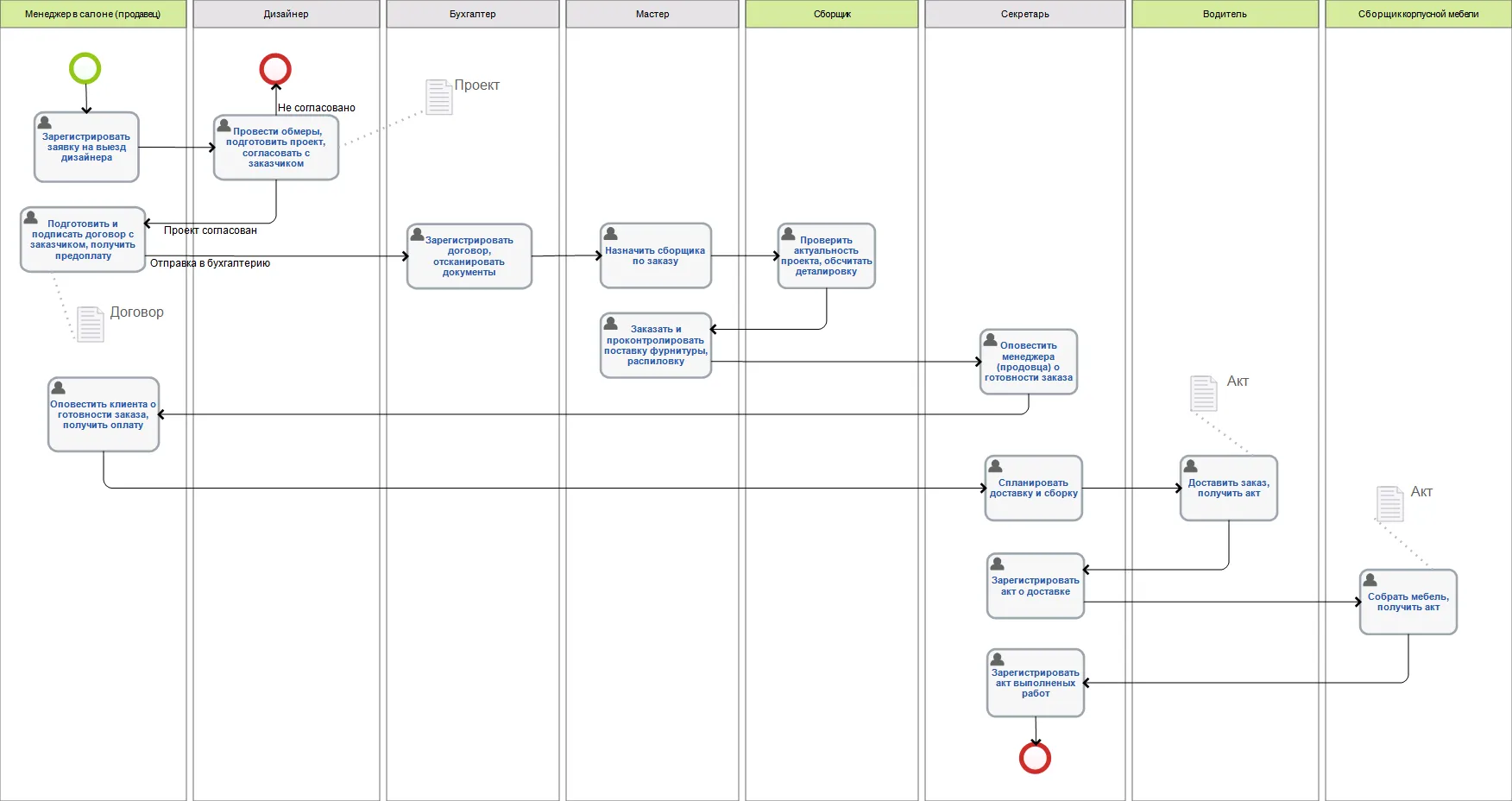 Формализованный бизнес-процесс «Заказ на корпусную мебель»:
