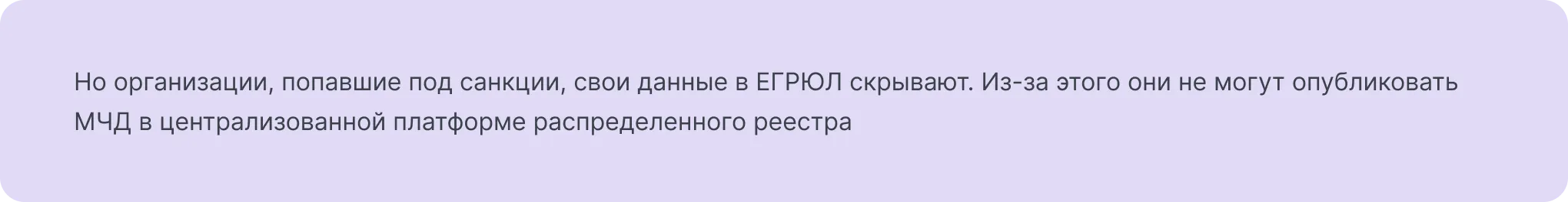 Правда, воспользоваться преимуществами МЧД фирмам, которые оказались под санкциями, практически невозможно. Для того, чтобы сведения в МЧД были опубликованы в централизованной платформе распределенного реестра ФНС, они должны быть проверены в ЕГРЮЛ.
