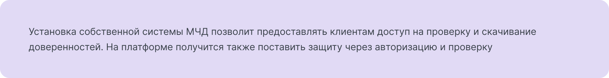 Такой вариант выхода из ситуации позволит автоматизировать работу с МЧД. Однако компаниям придется потратиться, поскольку для этого необходима собственная платформа, которую нужно обслуживать, развивать, поддерживать и интегрировать с ЕСИА и другими площадками.
