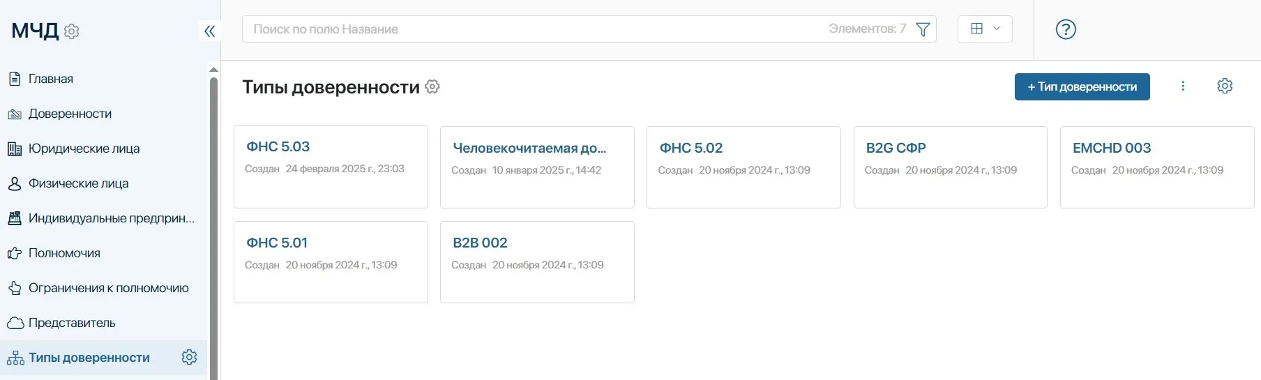 Типы доверенности в модуле “Управление МЧД” в СЭД ELMA365 СSP