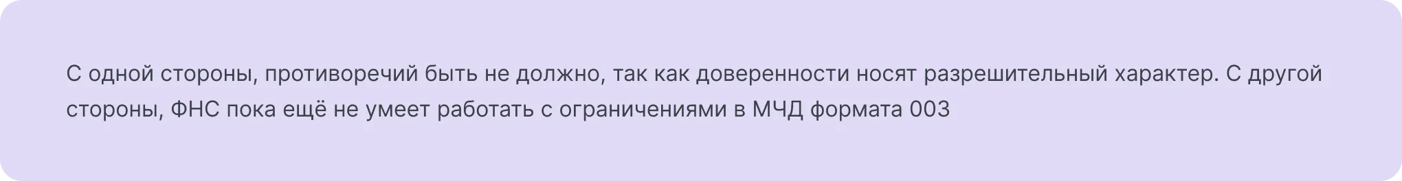 Возможно ли возникновение противоречий между машиночитаемыми доверенностями (МЧД)? С одной стороны, это вряд ли возможно, так как МЧД обычно предоставляют разрешение на осуществление определенных действий.