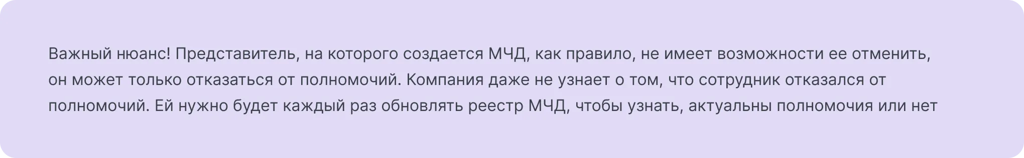 - Статус отмены машиночитаемой доверенности отображается в списке доверенностей и в карточке МЧД.