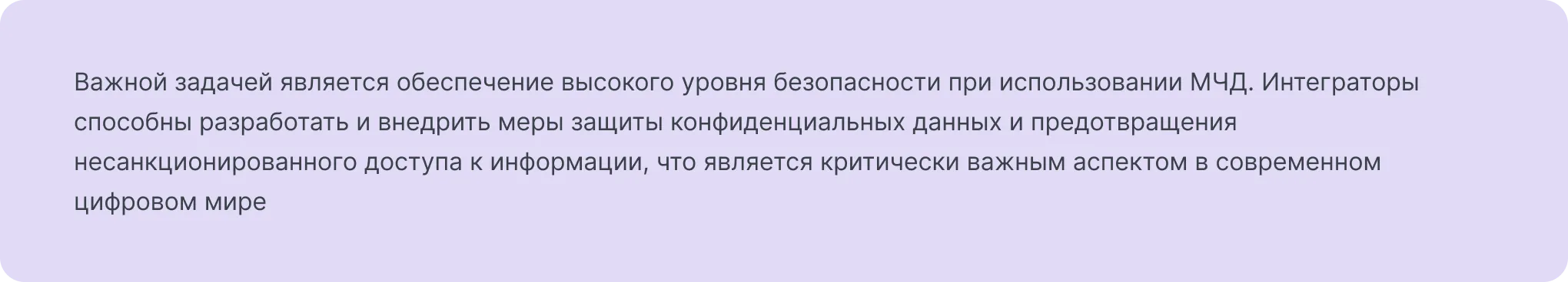 Во-вторых, интеграторы могут настроить и кастомизировать программное обеспечение или сервисы, связанные с МЧД, в соответствии с уникальными потребностями и требованиями компании. Такая индивидуализация позволяет максимально эффективно использовать новые технологии и улучшить работу бизнес-процессов.